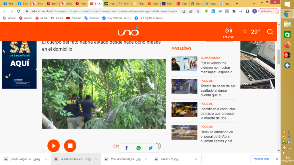 Encontraron un feto que tenía 5 semanas de gestación en el cuarto de la adolescente que murió apuñalada y fue encontrada en el municipio de Entre Ríos, en Cochabamba.