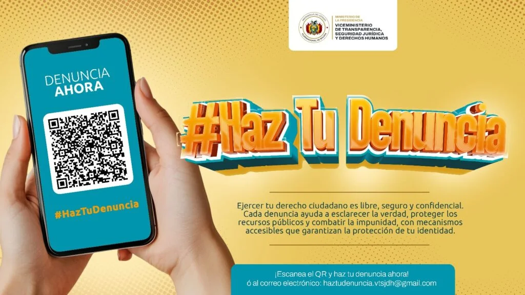 García aclaró que la herramienta no se restringe a sectores específicos como hidrocarburos o el Fondo Indígena, sino que abarca a todas las instituciones. Asimismo, garantizó la absoluta confidencialidad. El QR está disponible en las redes sociales de la entidad.